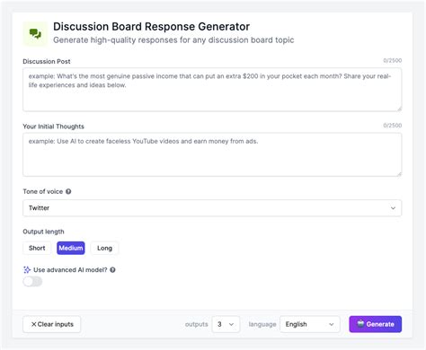 Discussion Board Response Generator. Web ai4chat is a platform that lets you write about characters, words, sentences, and paragraphs using different ai models like. Enter a description and get a suggestions for your.