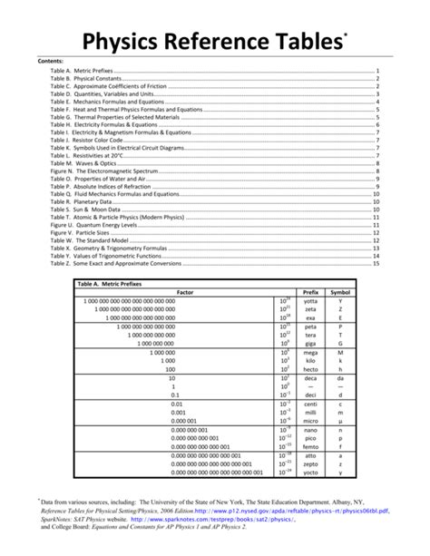 Physics Reference Table. Web physics reference tables page 4 table d. 3 table of atomic and nuclear constants;